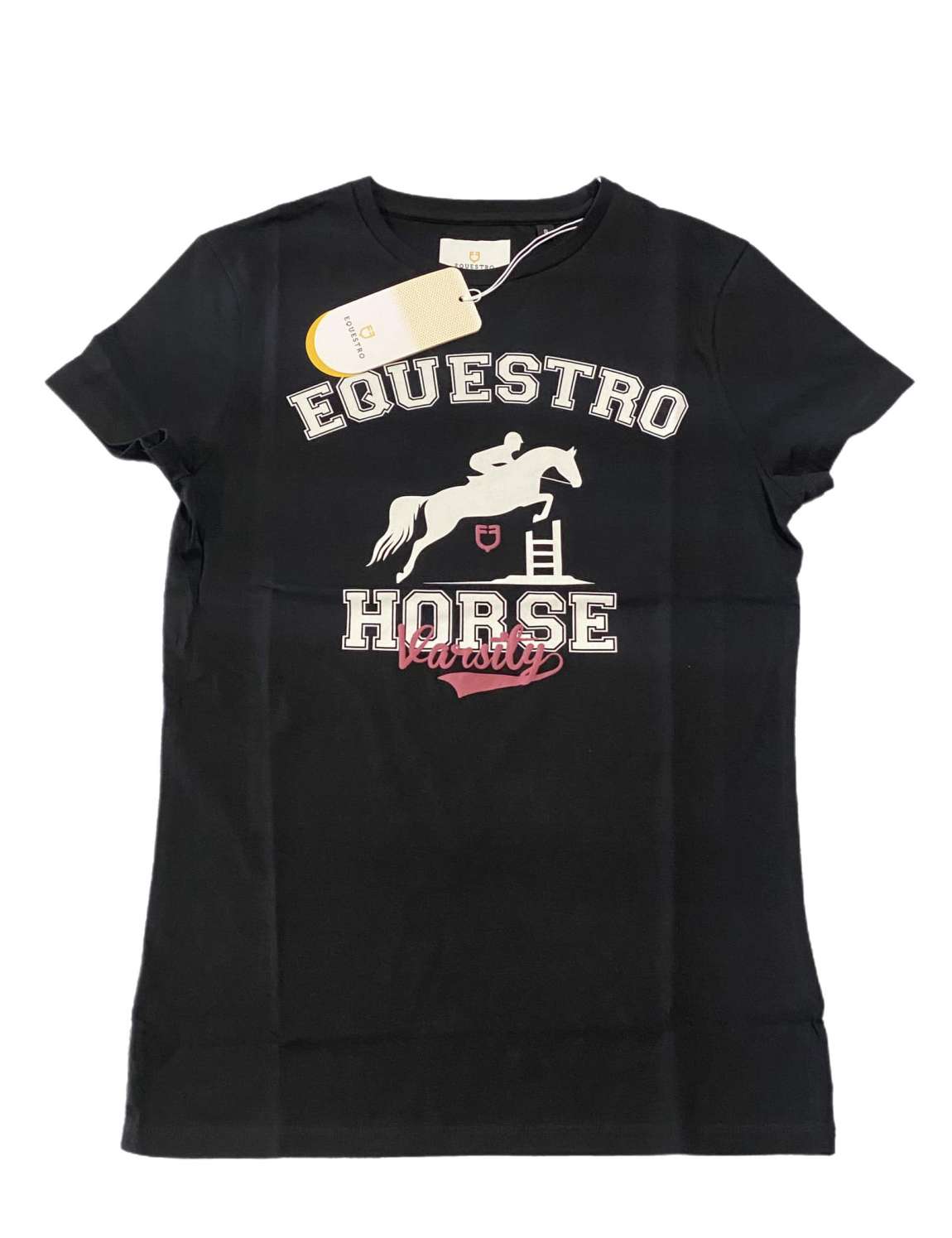 MAGLIETTA DONNA EQUESTRO MODELLO HORSE VARSITY COTONE ELASTICIZZATO CON STAMPA IN RILIEVO GOMMATA.